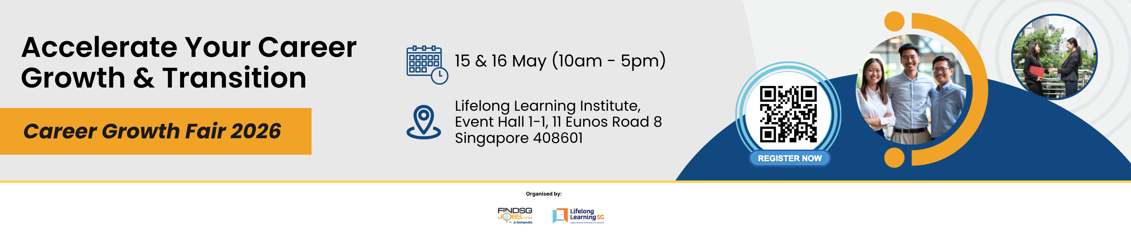Join the inaugural Career Growth Fair 2026, happening on 15 & 16 May 2026 at the Lifelong Learning Institute — a curated experience built for students and working adults who are actively exploring their next career move. Unlike traditional career fairs, this event brings together AI-powered matching, employer partnerships, and skills-based opportunities to help job seekers discover roles that are directly relevant to the courses and training programmes offered by Institutes of Higher Learning and training providers.